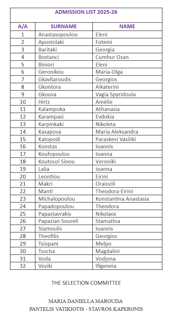 We are pleased to announce the list of students admitted to the MA in Digital Transformation: e-Diplomacy, e-Campaigning & Digital Law for the academic year 2025–2026.